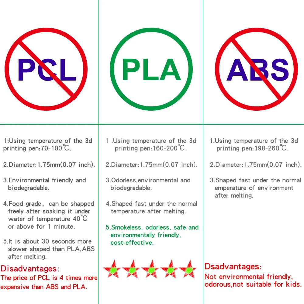 *READY-TO-USE KIT: Includes 3 colors (30 feet) of PLA plastic to keep you Doodling for ages, as well as a USB power adapter, step-by-step manual, and a free stencil guide. Just plug in, heat it up and enjoy the fun of creating three-dimensional masterpieces. PLA is a versatile, easy-to-use printing plastic that is great for both first time and advanced users.