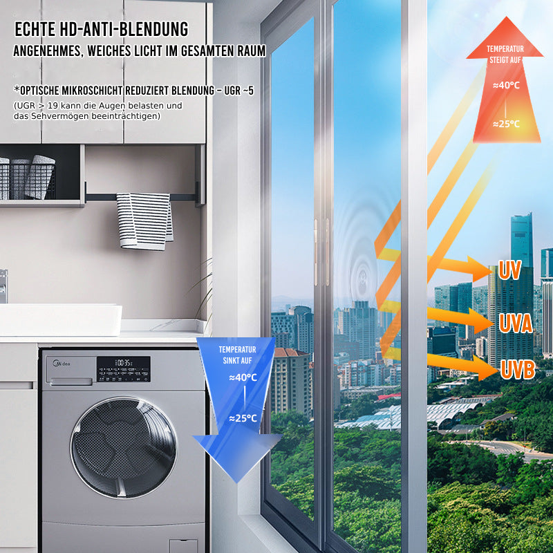 Blockiert bis zu 97 % Infrarot- und UV-Strahlen – hält Räume kühl und schützt Möbel & Haut.